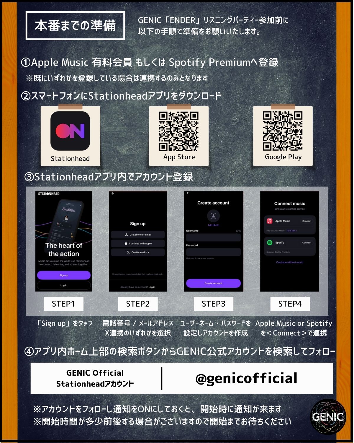 ④GENIC公式Stationhead(@genicofficial)を事前にフォローし、リスニングパーティーが開始されましたらご参加ください。