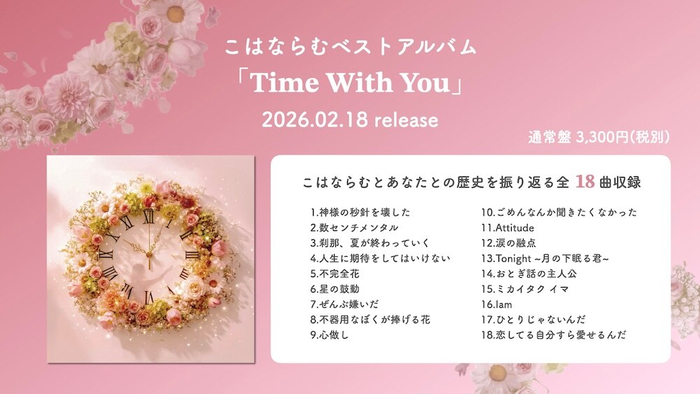 また2月18日(水)に発売する、こはならむベストアルバム「Time With You」の1曲目として「神様の秒針を壊した」が収録されます。