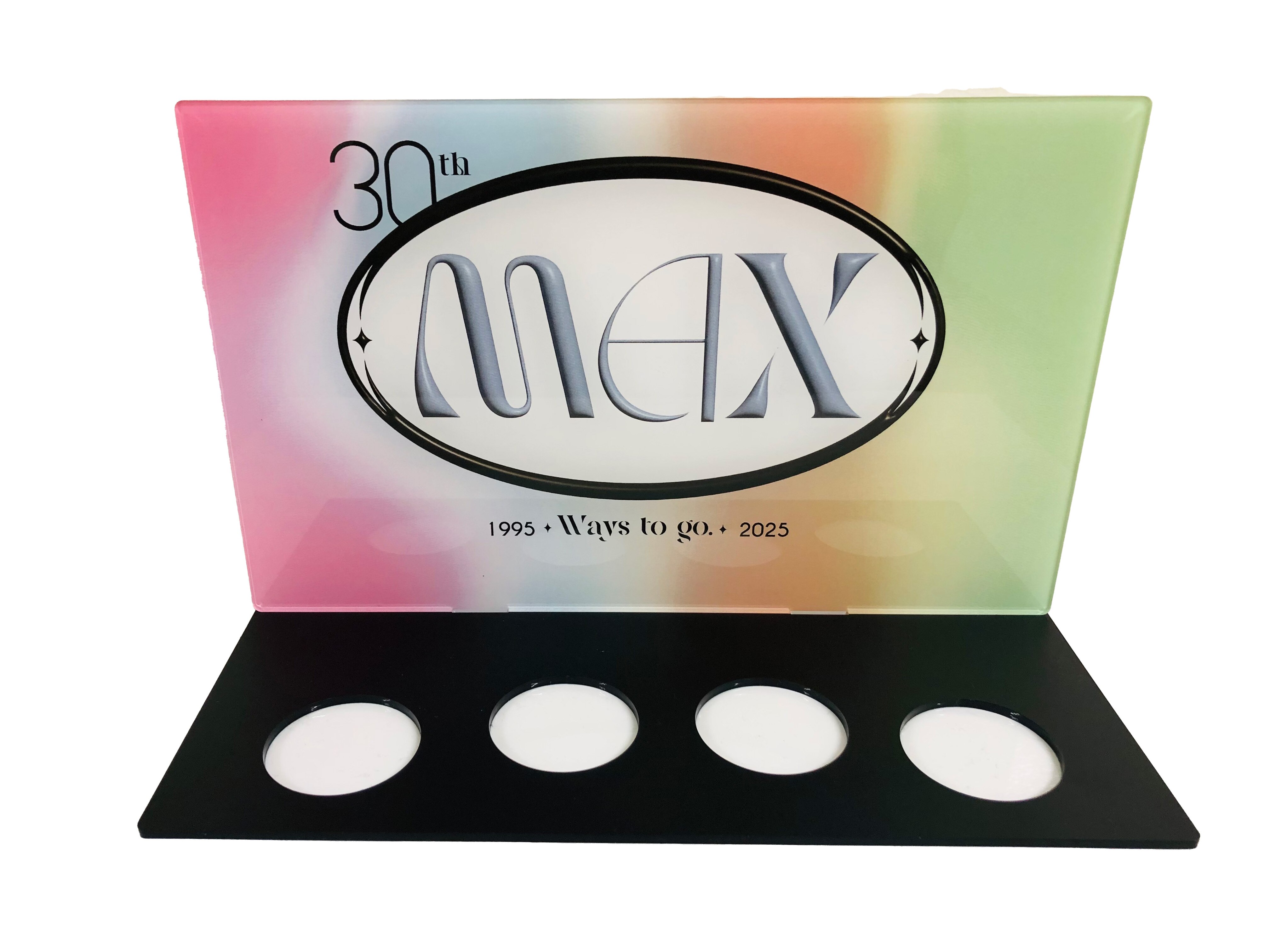 ※現在販売中の「MAX 30th LIVE CONTACT 2025 ~Ways To Go~」アクスタも台座にはめ込めます。