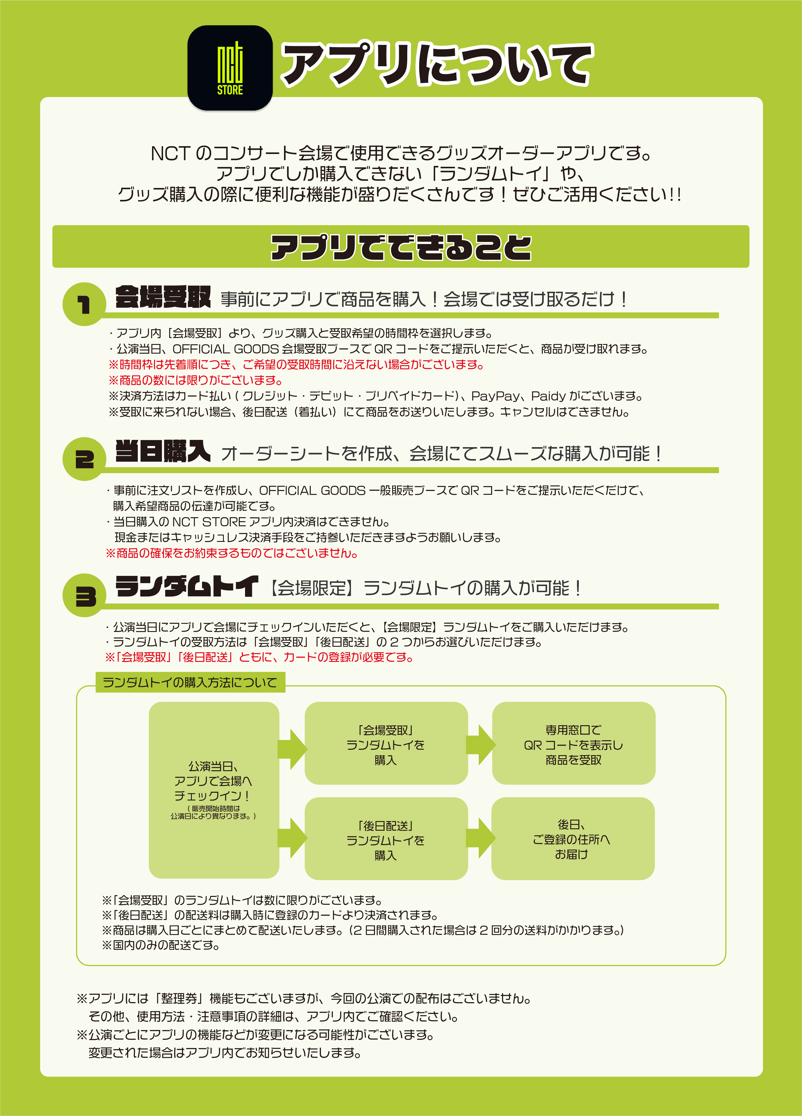 ●「NCT STORE」 アプリを利用した「会場受取」「ランダムトイ」のご購入について