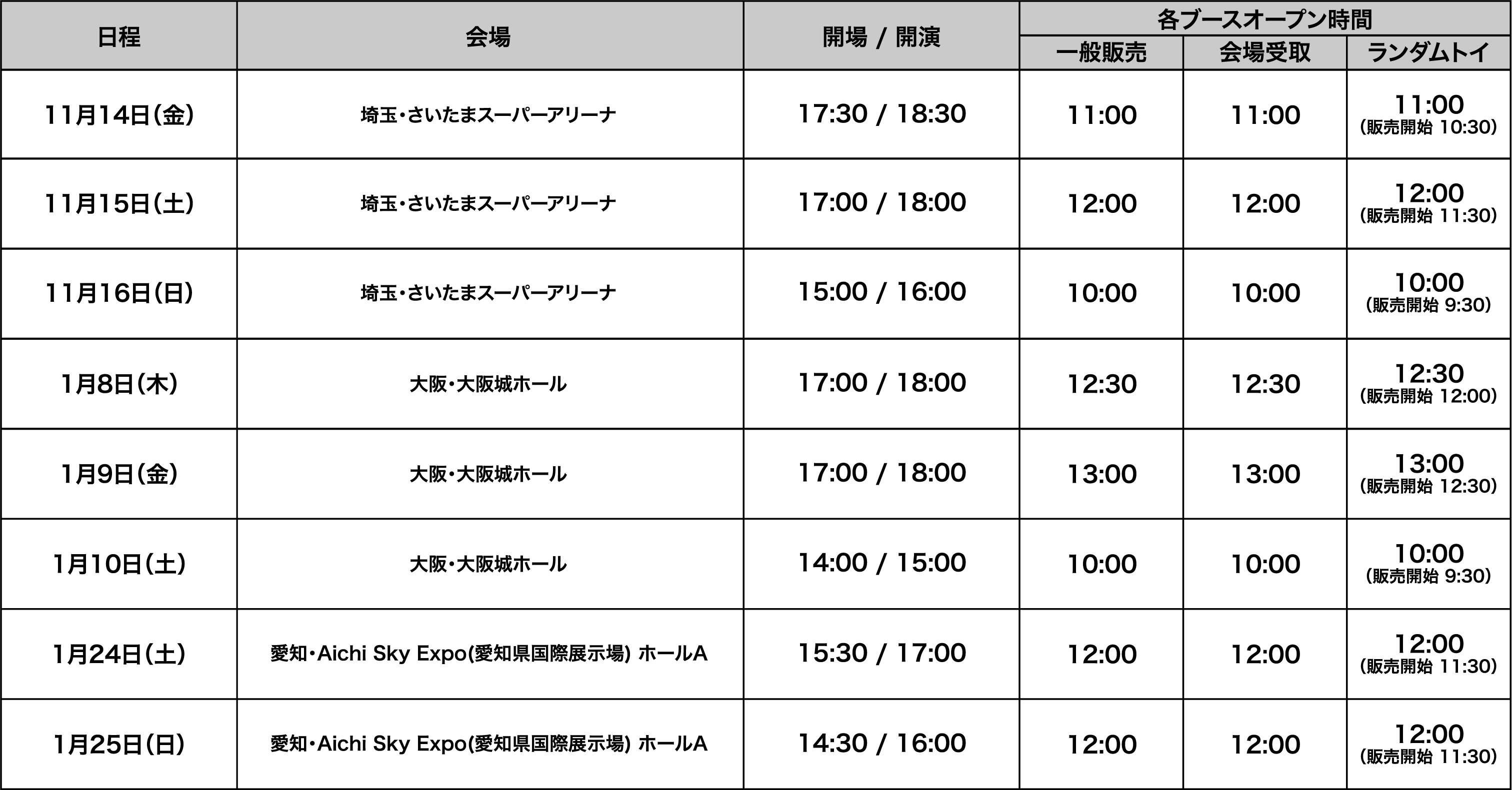 ※「OFFICIAL GOODS会場受取」ブースは各公演の開演時間で終了となります。