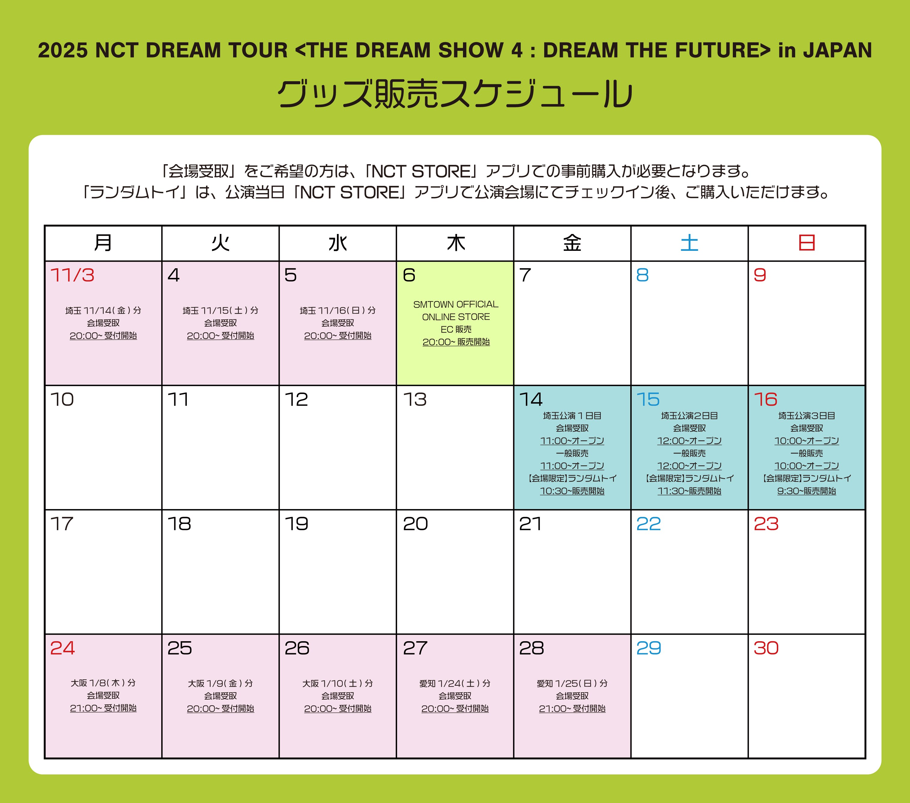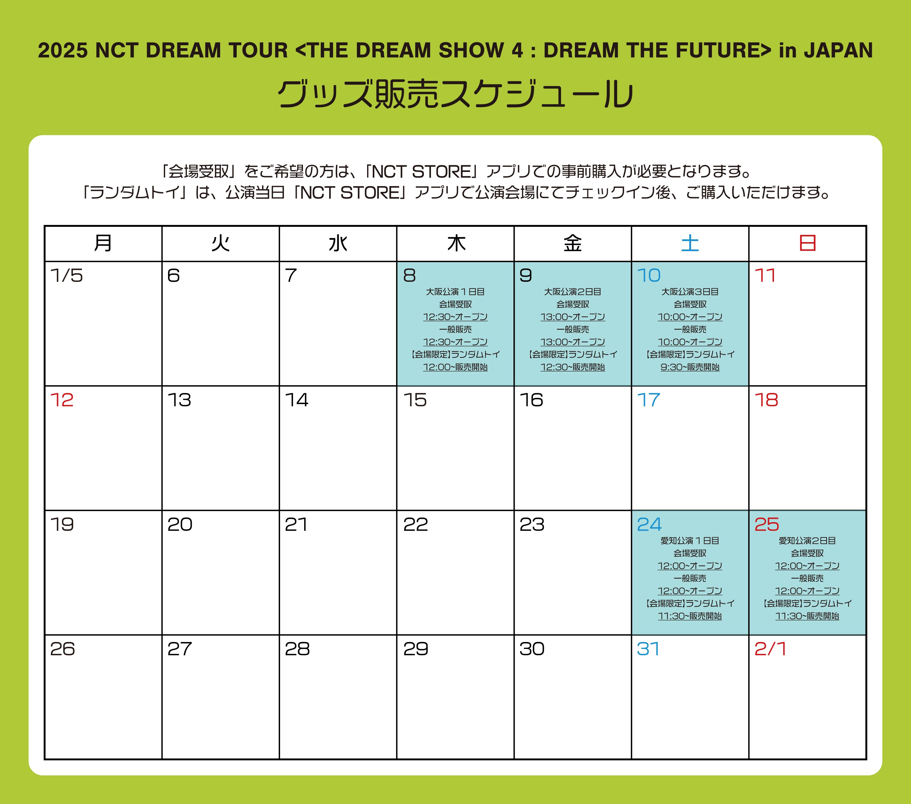 ※オンラインでご購入された商品は参加される公演までのお届けをお約束することはできかねます。会場にてグッズをご利用予定のお客様は、「NCT STORE」アプリでの「会場受取」か「一般販売」をご利用ください。