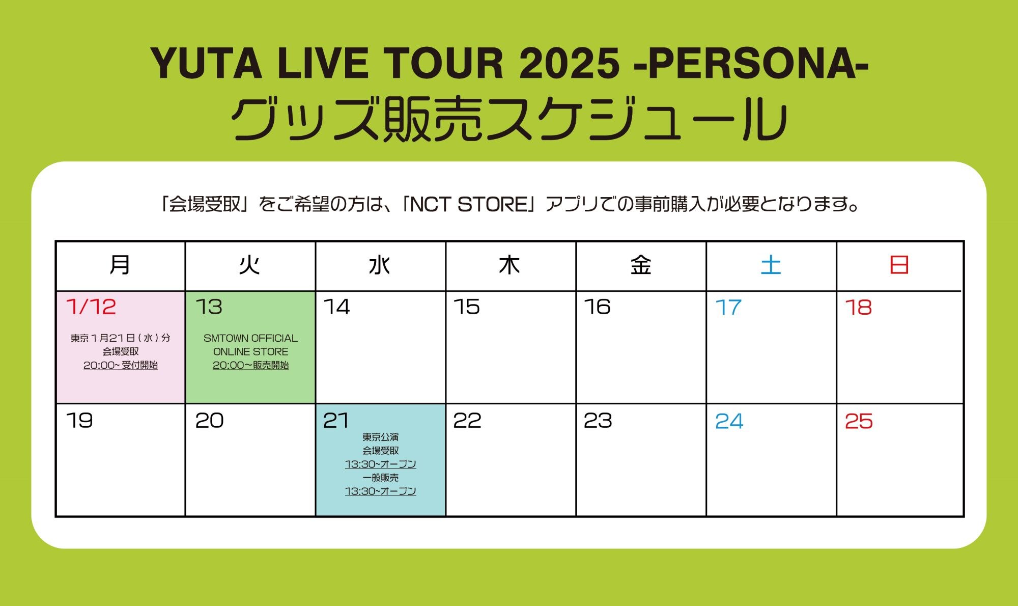 『YUTA LIVE TOUR 2025 -PERSONA-』日本武道館公演追加グッズおよび販売スケジュールをご案内いたします。