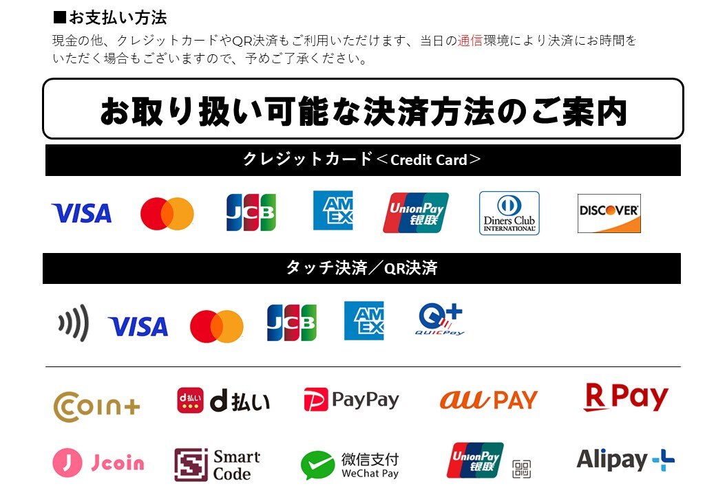 ※お支払いは、現金の他、下記決済方法がご利用できます。