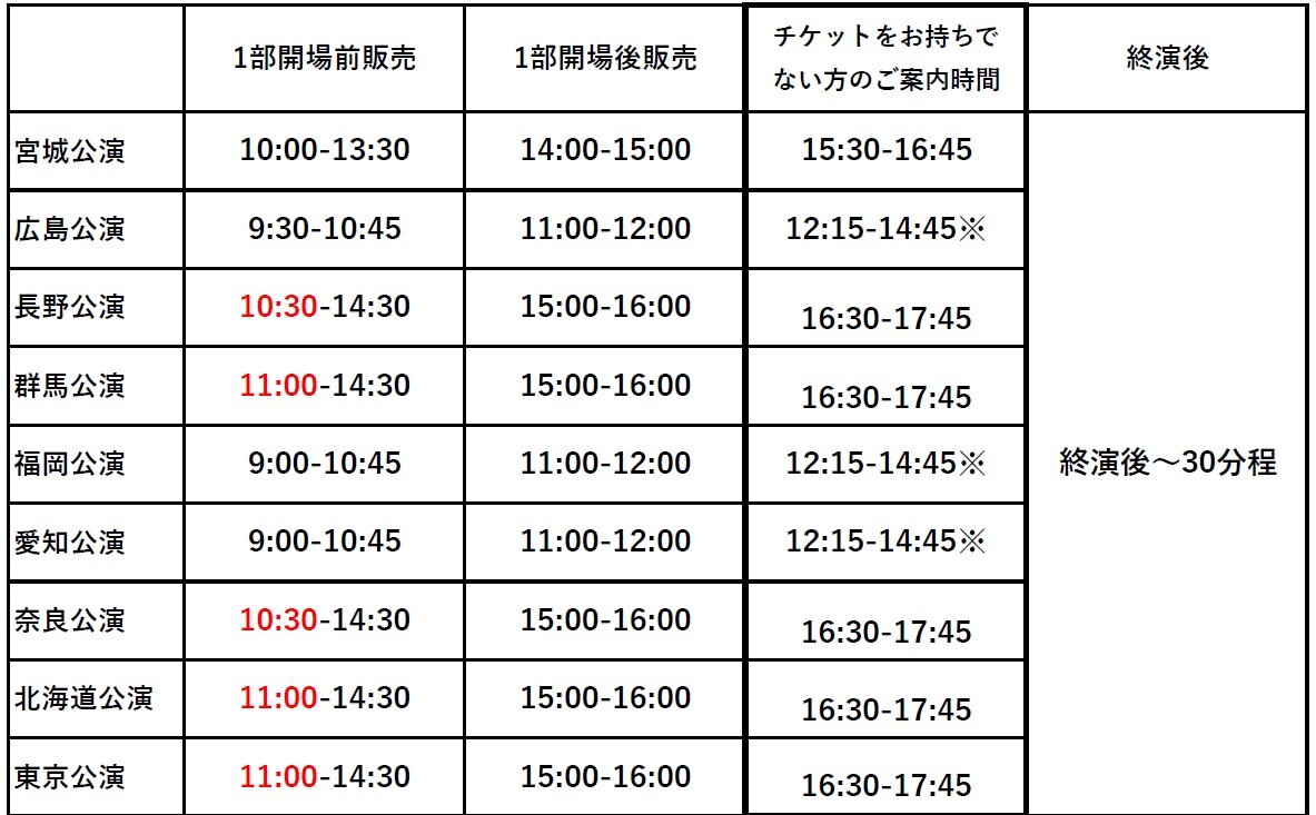 ※販売時間内でも、販売の一時中断、グッズ売り場の待機列を切らせていただく場合がございますので、予めご了承ください。