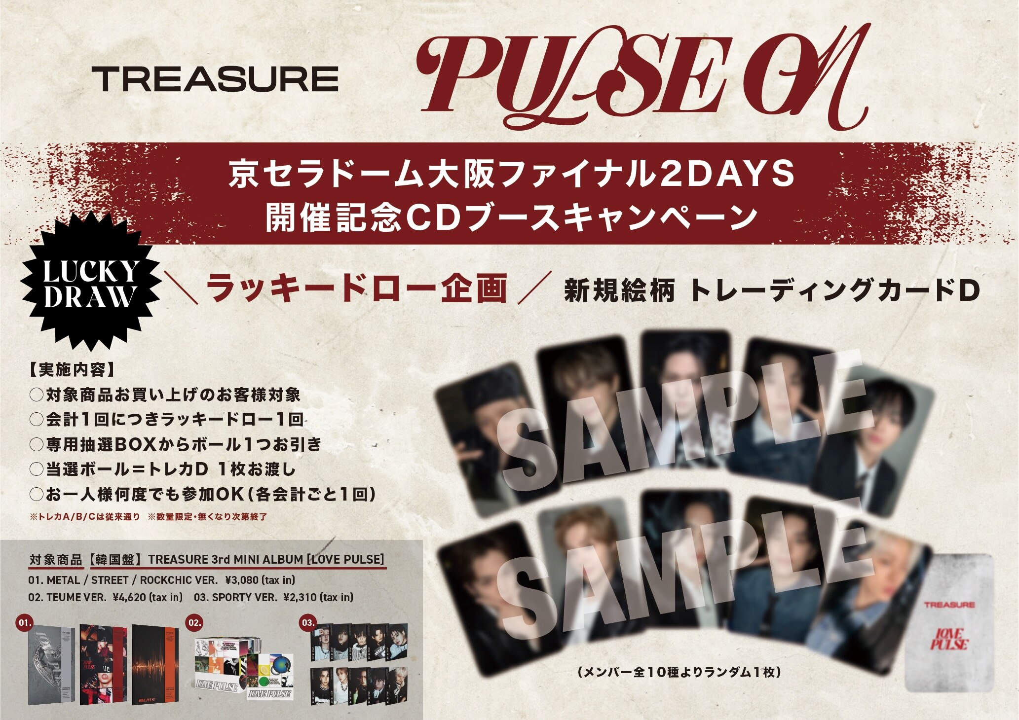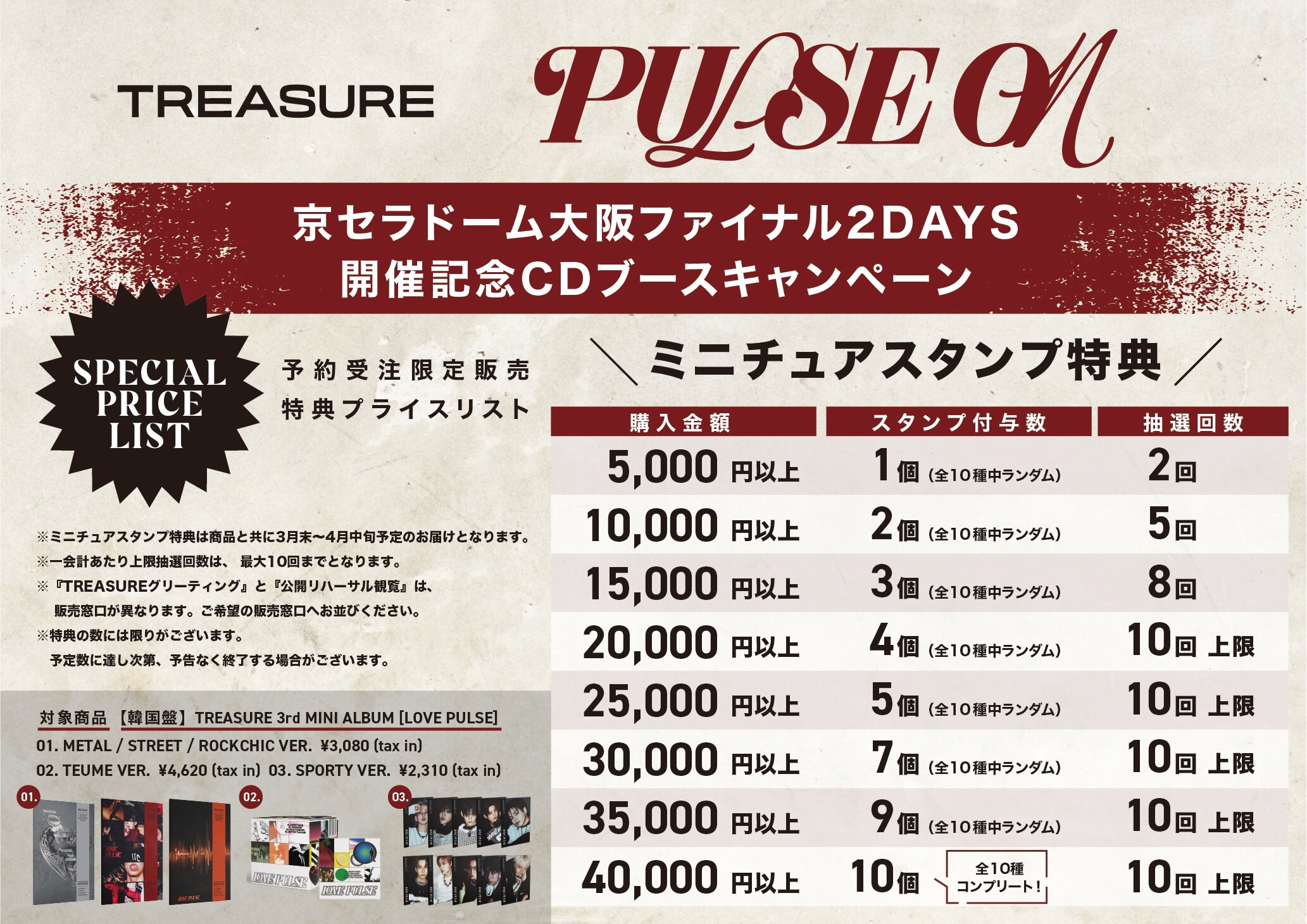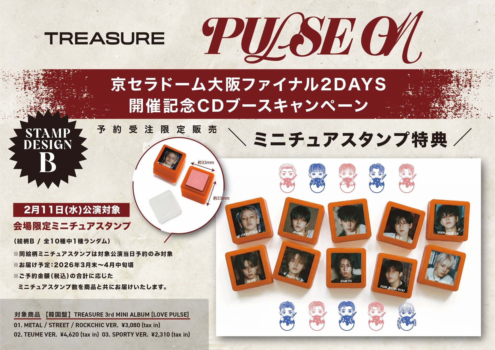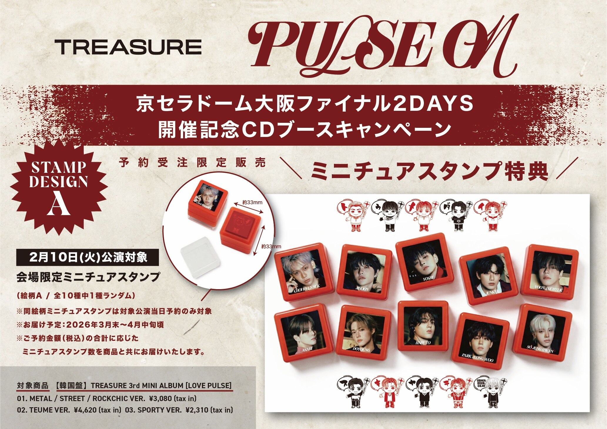 『2025-26 TREASURE TOUR [PULSE ON] SPECIAL in KYOCERA DOME OSAKA』ファイナル2DAYSの開催を記念し、当日会場CDブースにてご来場記念の特別特典企画を実施いたします。