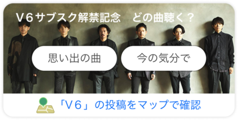 本企画では、「Yahoo!天気アプリ」の「みんなの投稿」機能を使って、V6の曲とともに過ごした"思い出の場所"のエピソードや“その時の気分の楽曲”を投稿してください。