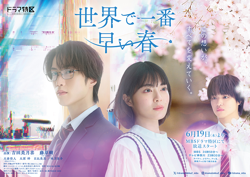 ドラマ「世界で一番早い春」は、講談社「Kiss」にて連載されPalcy等でも人気を集めている漫画原作『世界で一番早い春』(川端志季)を基に、吉田美月喜と藤原樹(THE RAMPAGE)のW主演で実写化が決定した、タイムスリップ・ラブストーリー。