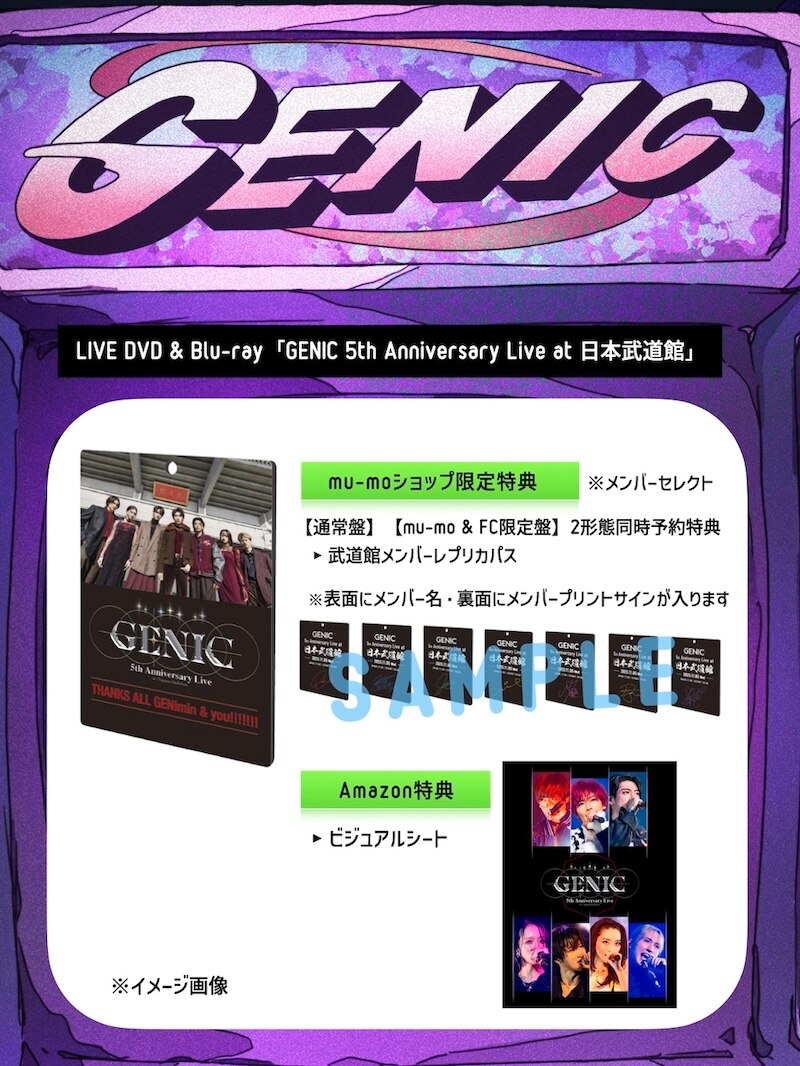 ※ライブ本編は、12月28日にTBSチャンネル1にて放送された「GENIC 5th Anniversary Live at 日本武道館」とは別編集での映像収録となります。