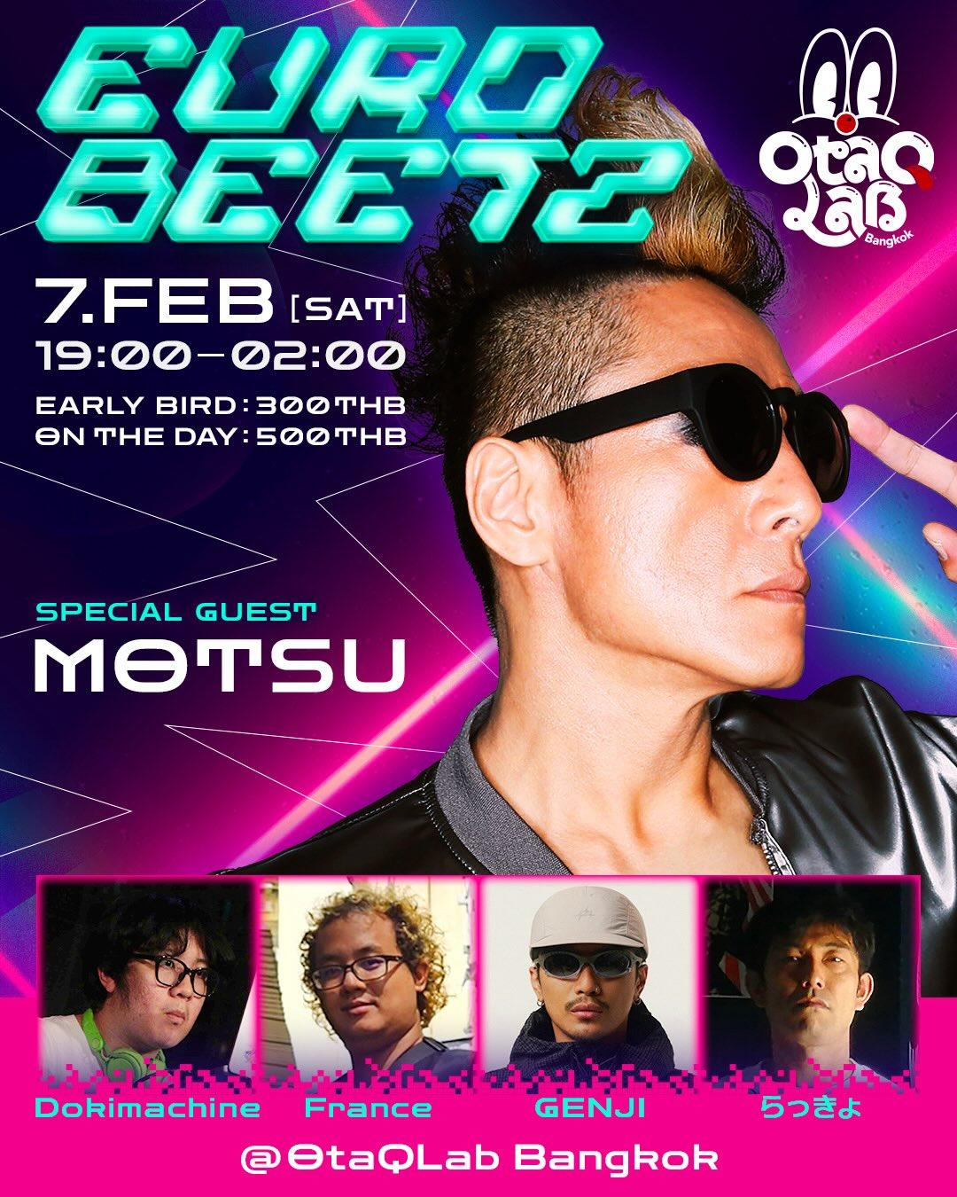 This edition of Beetz welcomes MOTSU, renowned for theme songs like Initial D and Yo-kai Watch, as our guest for a one-night-only CYBER JAPAN NIGHT featuring Japanese music songs DJs from Bangkok!