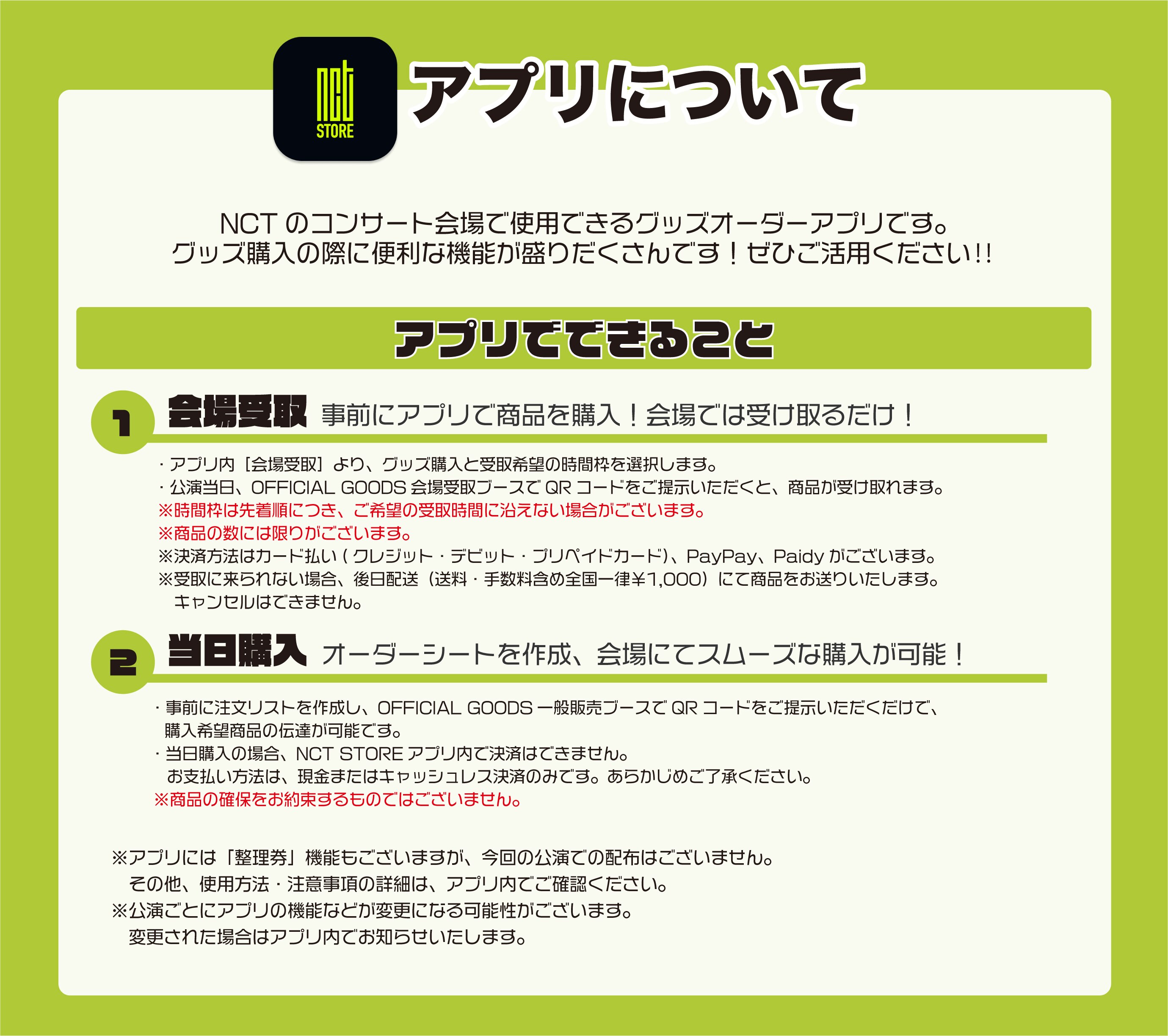 さらに今回も「NCT STORE」アプリにて、会場でスムーズにご購入いただける会場受取やオーダーシートの作成もご利用いただけます!