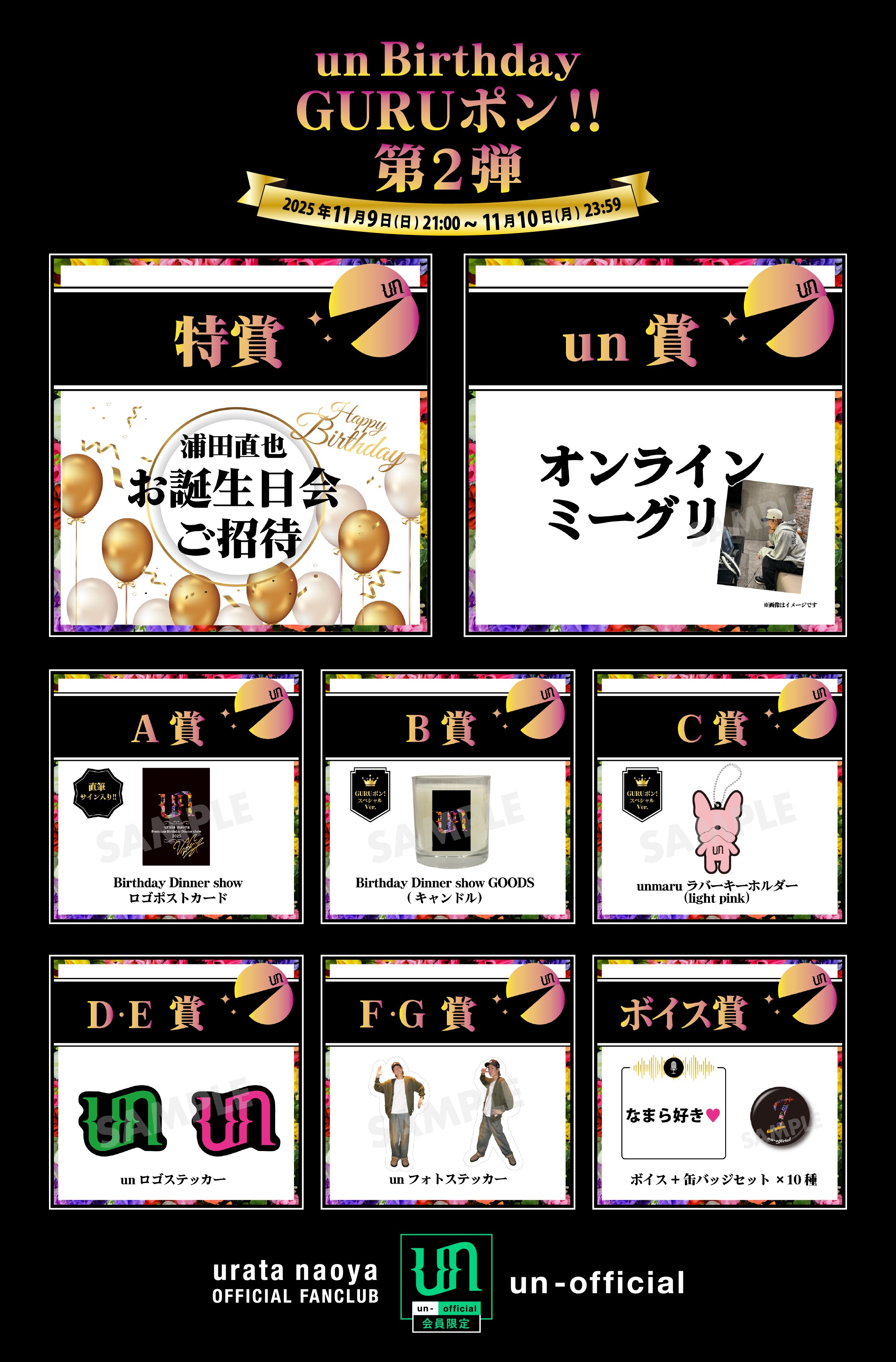 OFFICIAL FANCLUB "un-official"会員限定のオンラインくじ「un Birthday GURUポン!」第2弾販売のお知らせ